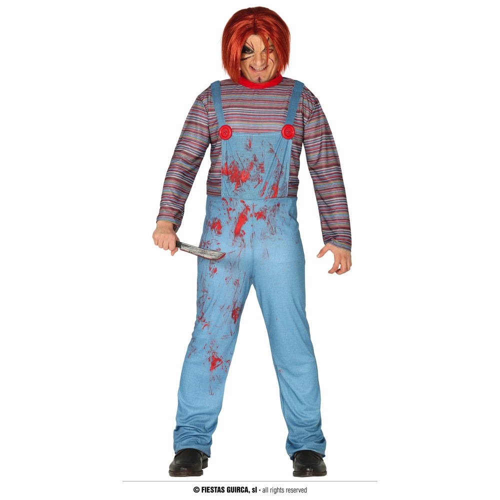 Theres nothing that comes close to how creepy this killer doll costume is! When you add the effects of some scars with make up and the sinister look of the wig this will have everyone creeped out to the max! The striped t shirt and dungarees give it the ultimate look of the famous killer doll!