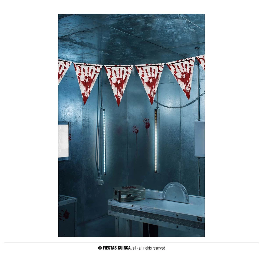 Decorate your home with this bloody bunting, adding a spooky affect to your home. The simple decoration will scare away any trick or treaters.Â