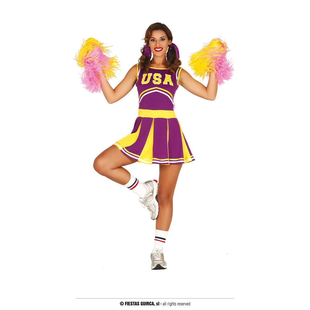 Five, Six, Seven Eight! Who do you appreciate! This costume will sure get you in the mood to represent your team. The Purple and Yellow dress provides a traditional look to the cheerleader costume.