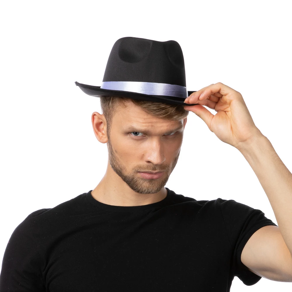 This Smart looking black hard hat is a great accessory to add to your look or even your costume, the hat is great quality and has a white strip going around .