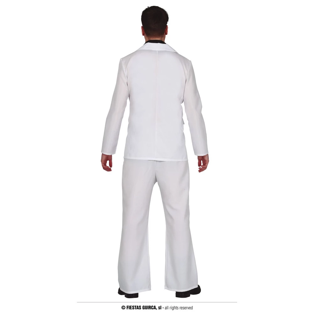 Dance your way into the party with this white disco suit, suitable for 1970s events you are bound to look the part. Pair the look with some black shoes and aviator glasses.Â