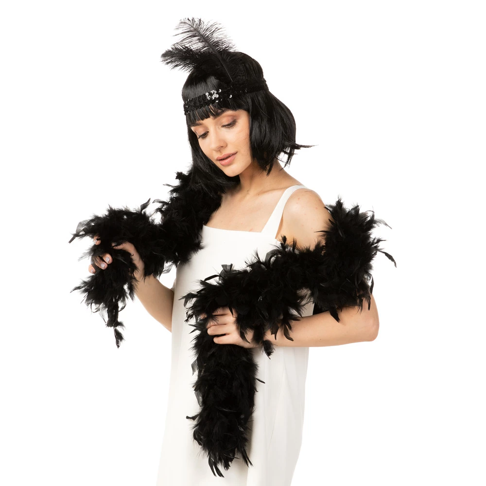 Are you struggling to put together your 1920s flapper look, well this beautiful Black feather boa will Flaunt your flamboyant side at the party. The elegant 1920s style accessory is a great touch of class to add to your costume.