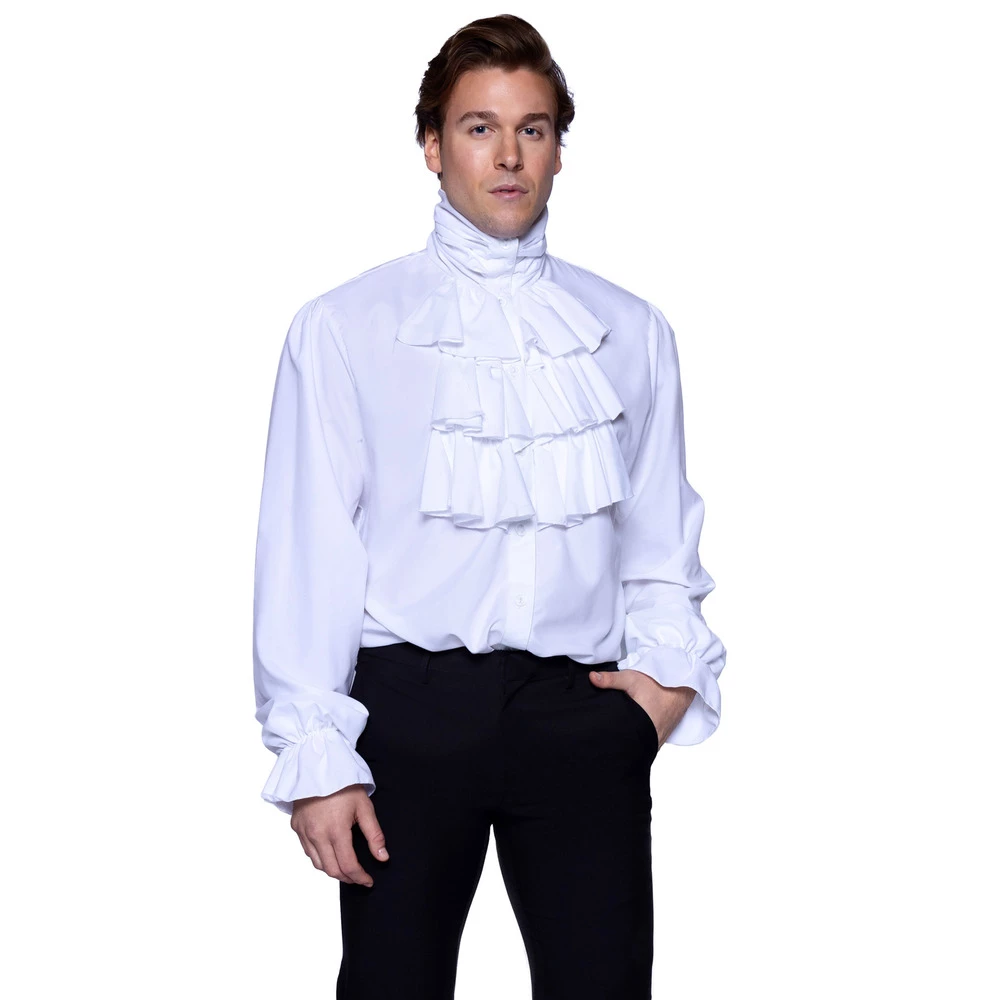 This Ruffle front shirt is the perfect base for your fancy dress costume, use for costumes such as pirates, steampunk, vampires and so much more. The simple t-shirt can be paired with plain trousers to complete the look.