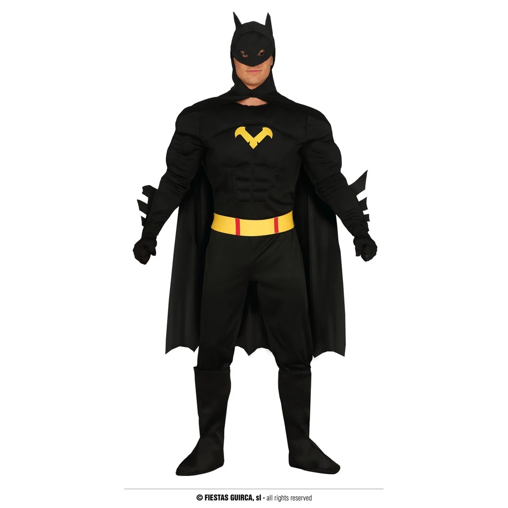 Turn into your favourite superhero with this fantastic dark costume and begin to fight evil. Bring fear into every criminal at the party and stand out from the crowd. The all in one jumpsuit is comfortable and also has built in muscles to improve your look even more!Â