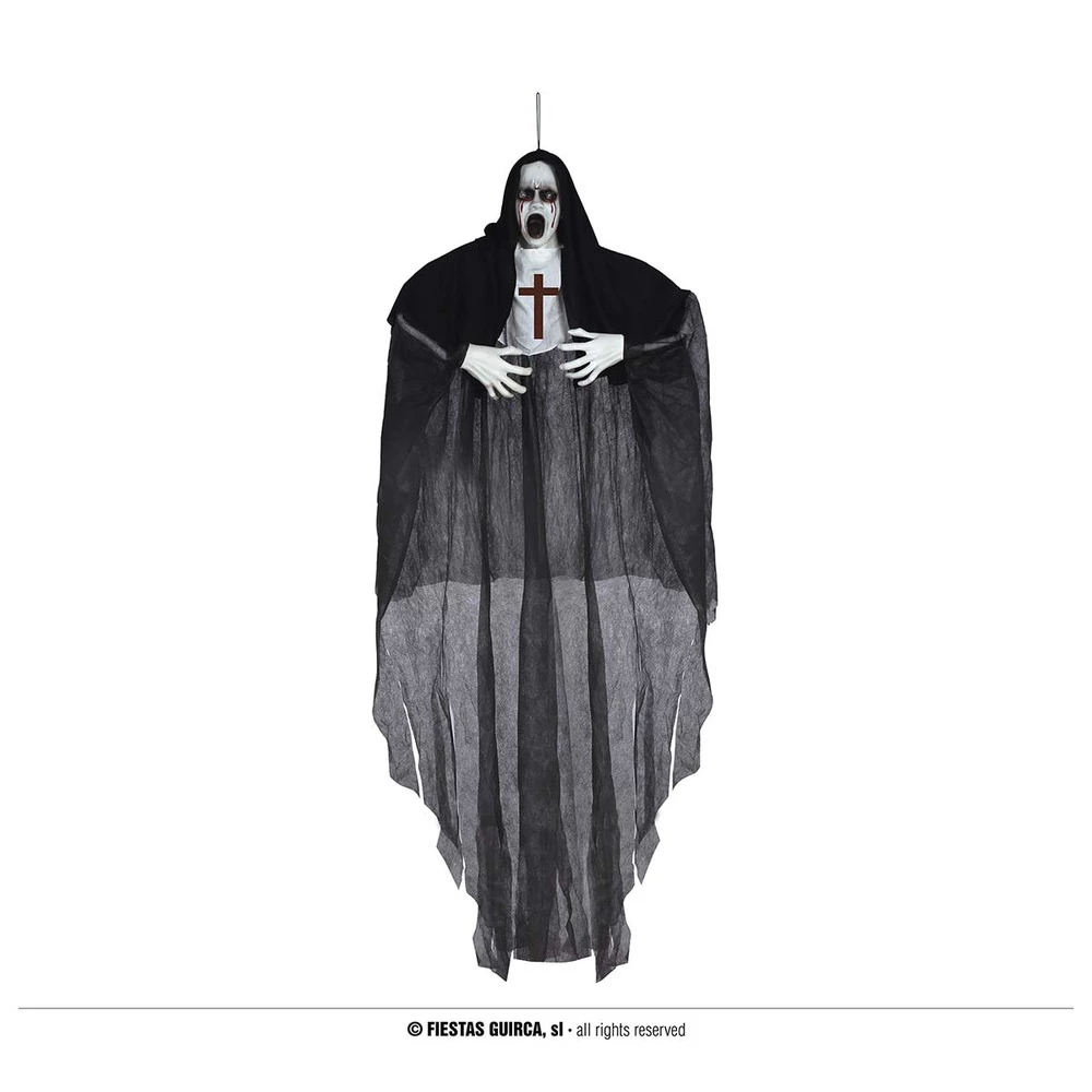 This scary hanging nun is a great feature for any Halloween horror house, it will be sure to scare all the guests. Hang outside your house or even inside, the nun has lights which make the decoration even more scary.