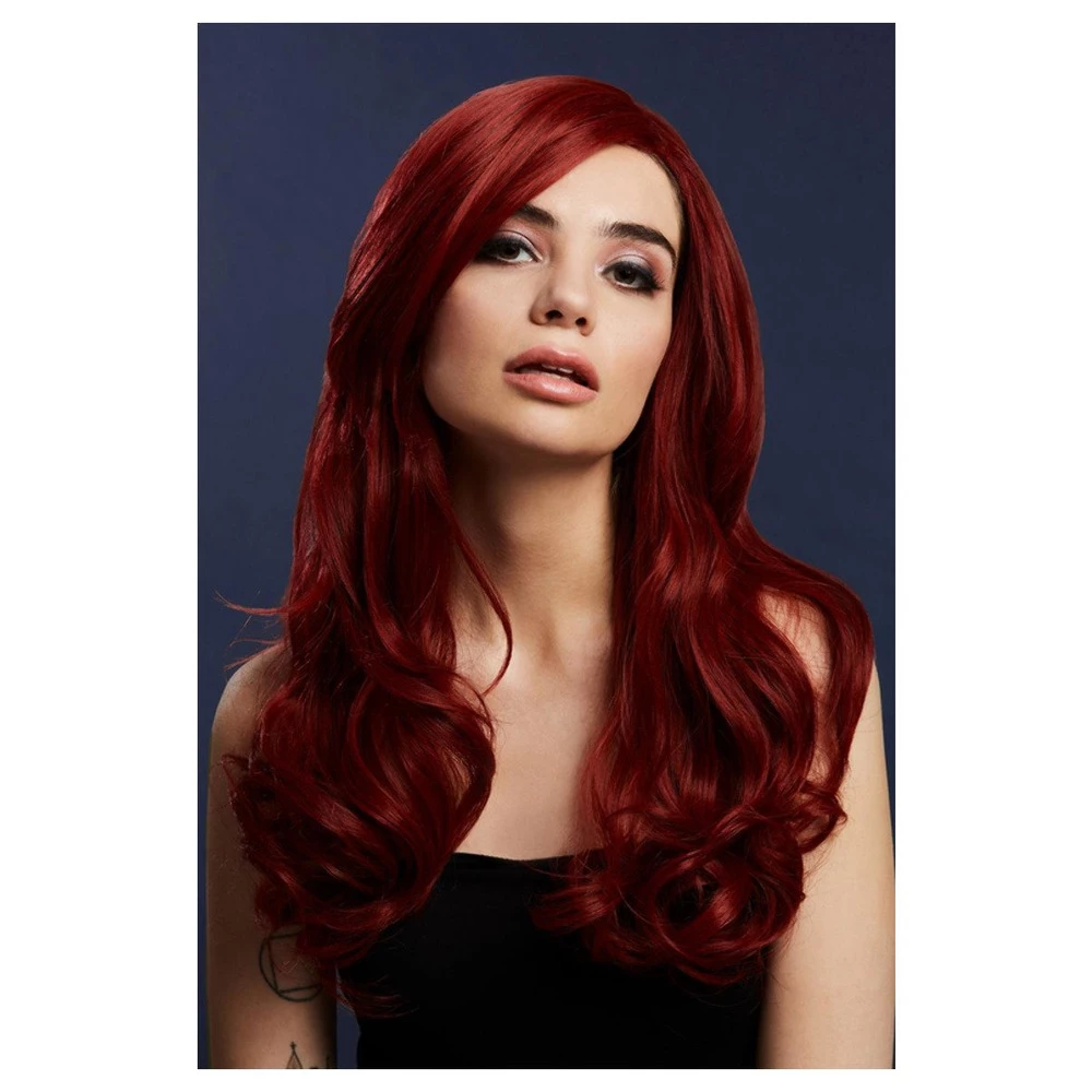 This beautiful long wavy wig by Fever will automatically change your appearance when wearing. The soft ruby coloured wig is a great wig to wear everyday. The stylish wig features an adjustable high quality, breathable and lighter feel wig cap inside.Â