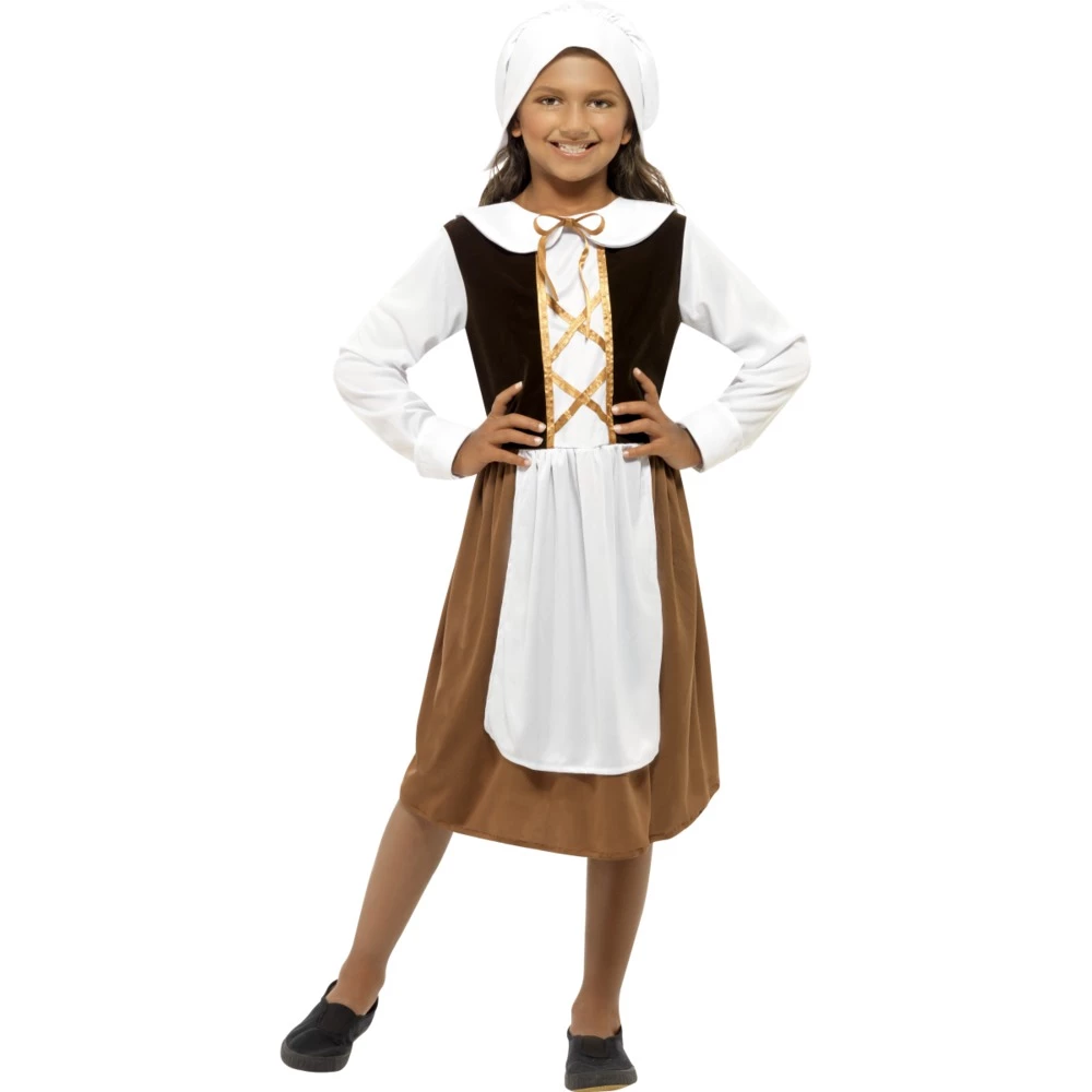 Girls will love travelling back to Tudor times in this superb Tudor Girl Costume. Complete with brown dress, hat and mock apron, this costume is perfect for parties!