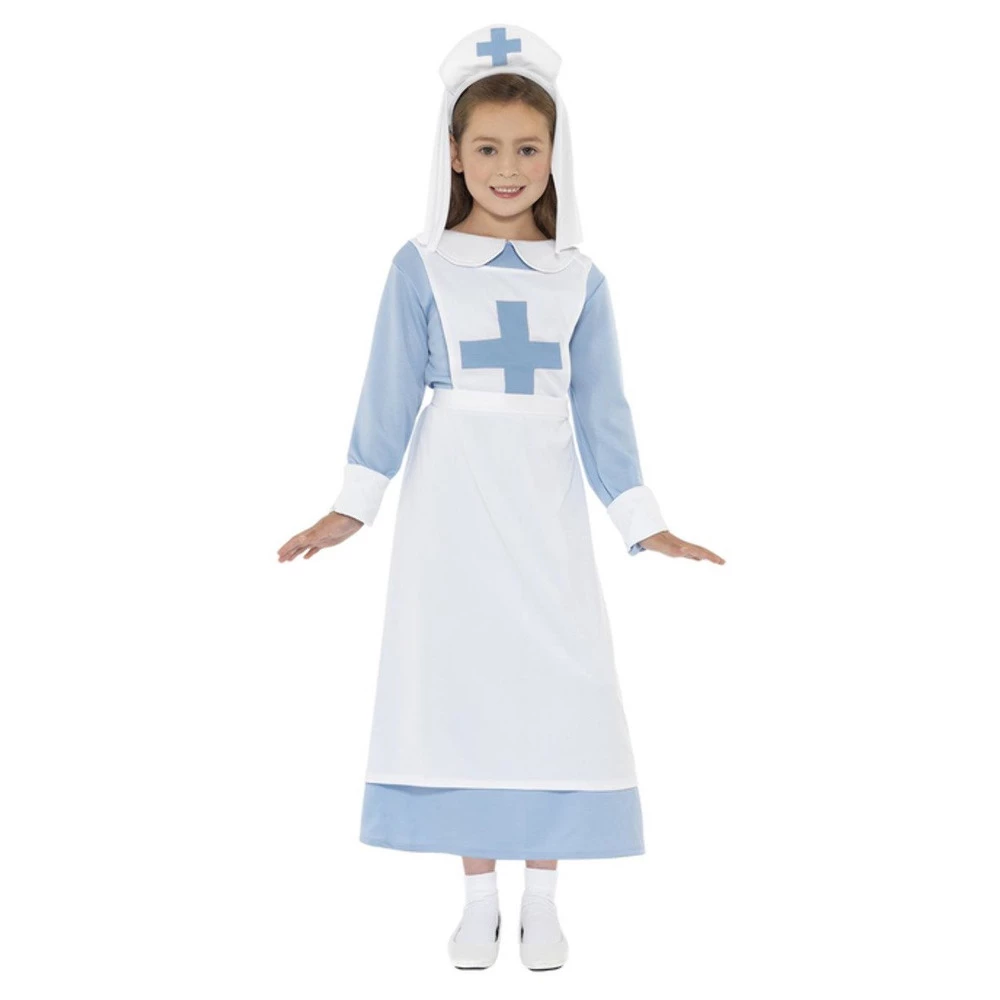 Little girls will enjoy administering some first aid in this cute WW1 Nurse Costume. The blue dress is complete with a mock apron and headpiece, simply accessorise with a stethoscope and pumps!.
