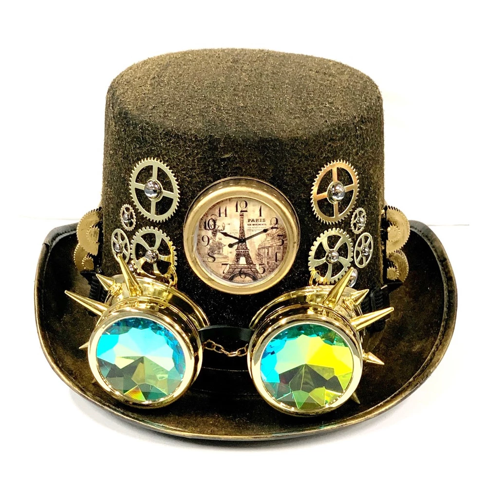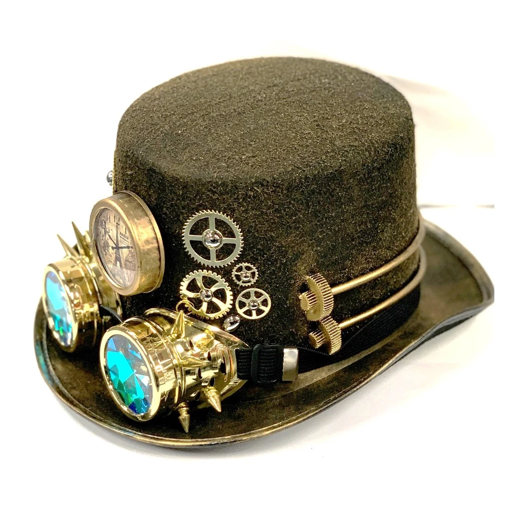 This beautiful detailed steampunk hat is a great addition to any Steampunk look or fancy dress costume. The high quality details really brings the hat to life. Paired with your gold steampunk goggles to add extra details, the goggles can be removed and worn separately.