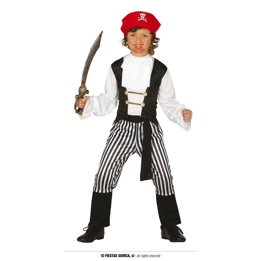 Who said Piracy was dead? With this Striped Pirate Costume you can sail the seven seas once more and hunt for the treasure of the world! With your skull and cross bones proudly displayed on your headband let everyone know to hoist the colours!