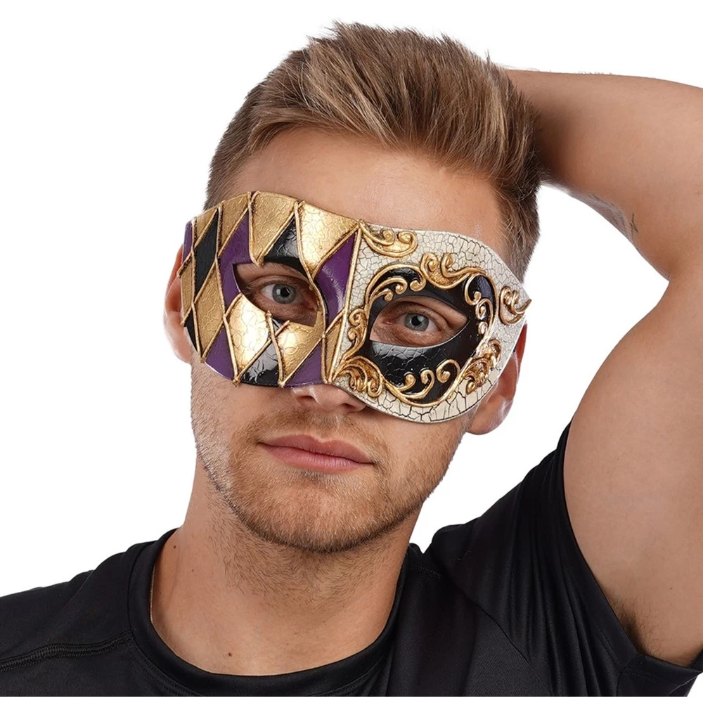 Disguise yourself at the fancy dress ball with this beautiful venetian eye mask, made from the highest quality this mask is great for so many events. The detailed pattern on the mask adds a touch of royalty. The deluxe featured mask can be worn for Halloween events, masquerade balls or even music videos. The mask can be worn by females and males making it completely unisex.